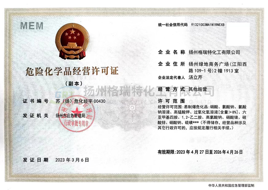 揚州格瑞特化工有限公司生產工廠坐落于江蘇省海安縣胡集工業(yè)園區(qū)和海安精細化工工業(yè)園。總公司成立于1999年,是集科、工、貿為一體的現代化生產型企業(yè)。專業(yè)致力于水處理劑、紡織印染助劑、化纖油劑等產品的科研、開發(fā)、生產和銷售。總公司占地面積40000m,建有現代化標準廠房,擁有先進的生產設備。年產各類水處理劑系列產品12000噸,紡織印染助劑5000噸,產品12個系列40多個品種。總公司注重技術投入,設立產品研發(fā)中心和環(huán)保運營中心,聘請了多位專家為公司技術顧問,并和多個重點院校建立了長期技術合作開發(fā)關系,是南通大學、江南大學、南京工業(yè)大學產學研基地。